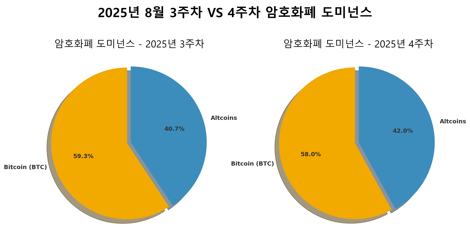넷째 주 비트코인 도미넌스가 58%선까지 하락할 것이라는 예측은 최근 데이터 흐름과 복합적인 시장 요인에 기반한 합리적 추정입니다. 그 근거는 다음과 같습니다.