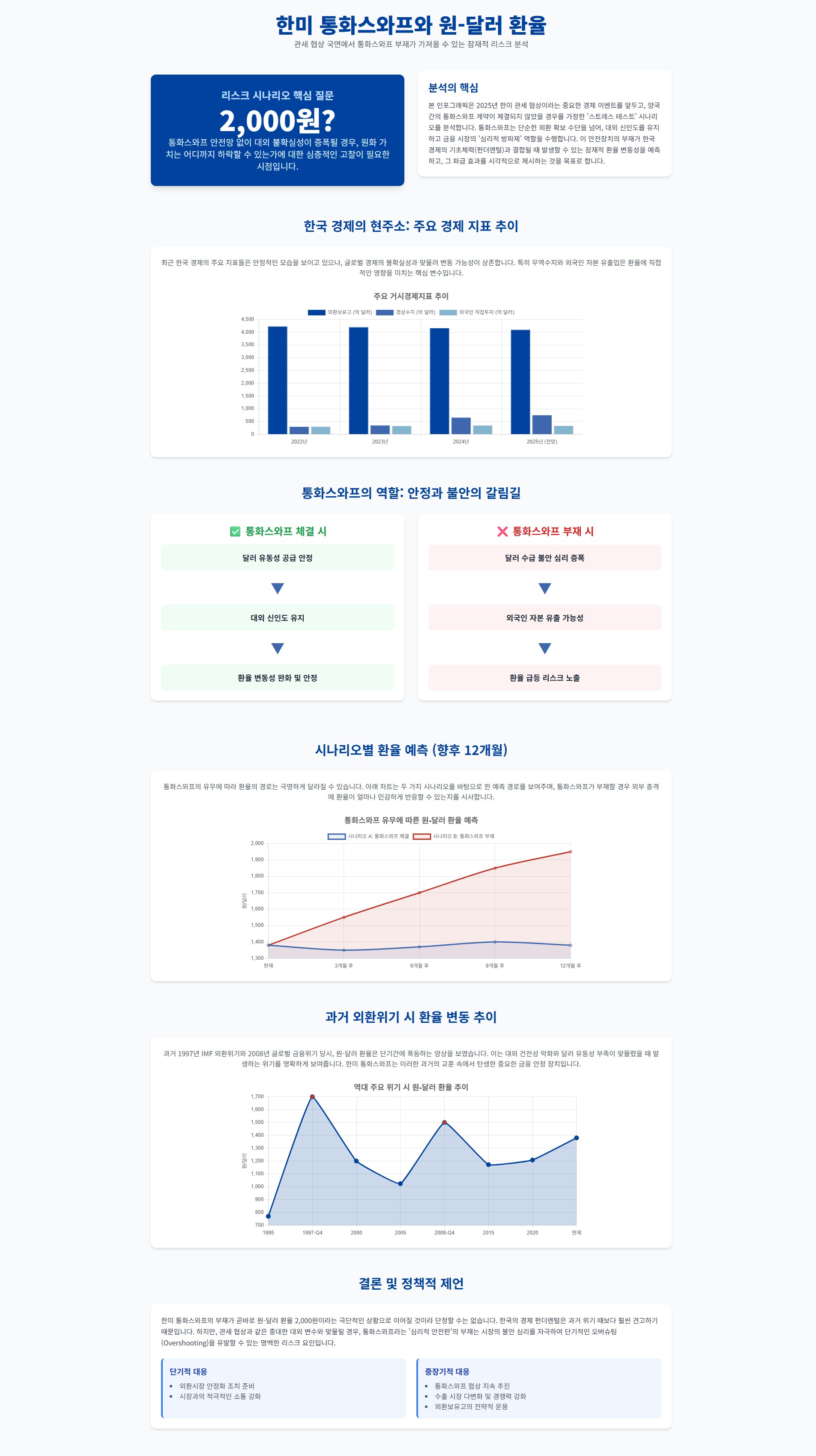한미 통화스와프 부재 속 관세 협정 타결: 원/달러 환율 2000원 위기 시나리오 심층 분석