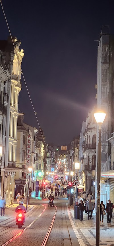 트램 선로를 따라 늘어선 건물들과 오가는 사람들의 모습이 어우러져 활기 넘치는 밤거리를 연출하더라고요.