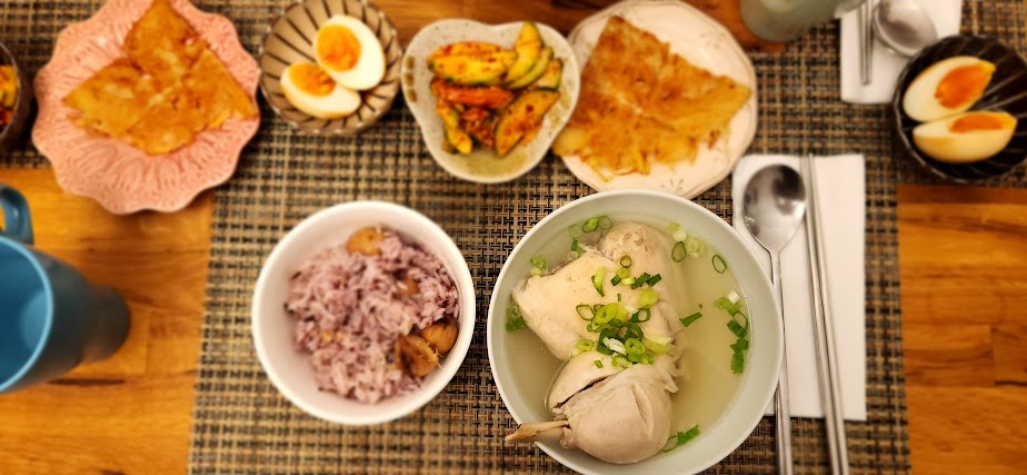 진하고 담백한 국물에 부드럽게 익은 닭고기, 그리고 김치와 밑반찬까지 완벽한 한식 밥상이었어요.