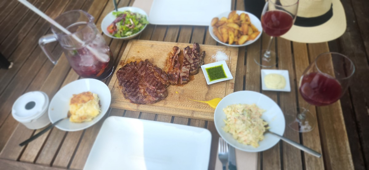 이곳에서 저는 육즙 가득한 스테이크와 상큼한 샹그리아를 주문했어요.