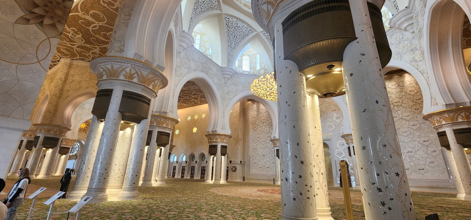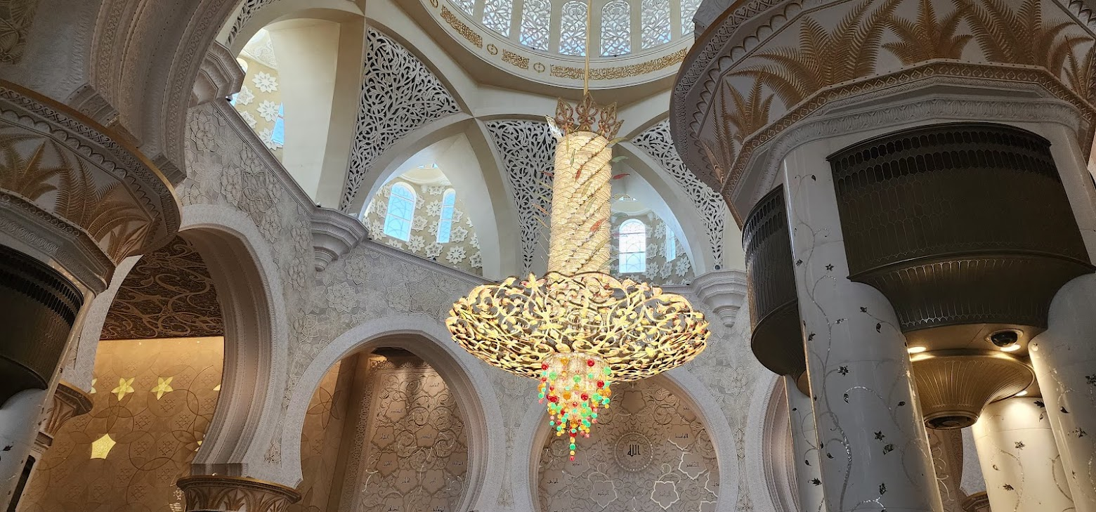 모스크 내부는 상상 이상으로 환상적이었어요. 세계에서 가장 큰 수제 카펫과 보석으로 장식된 샹들리에, 그리고 4만 명이 동시에 기도할 수 있다는 어마어마한 규모에 압도당했습니다. 약 한 시간 동안 친구와 함께 이야기를 나누고, 아쉬운 작별 인사를 한 뒤 저희는 다음 여정으로 향했습니다.