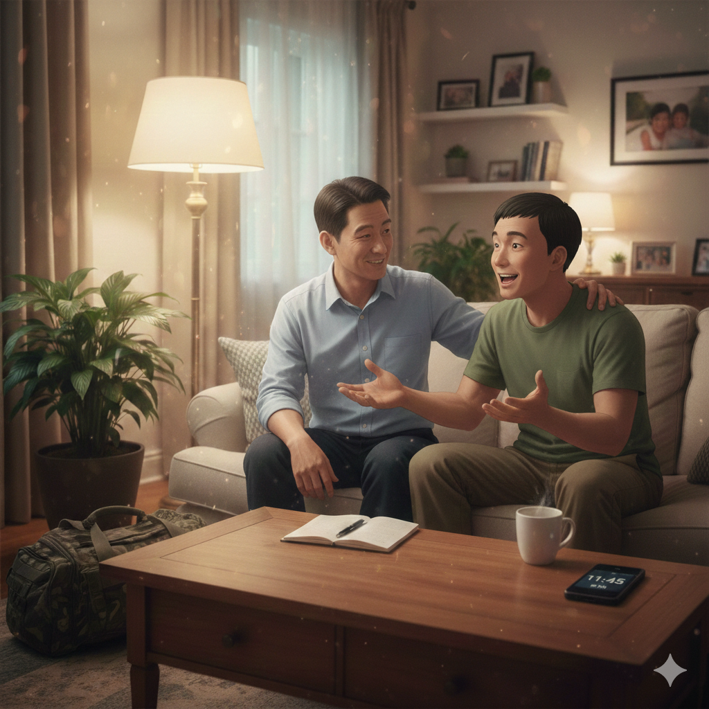 오늘을 버틴 힘은 '가족이라는 이름의 긍지'였다. 군대라는 좁은 세상에서 고생하고 돌아온 아들에게, 아버지가 보여줄 수 있는 가장 큰 환영은 맛있는 음식이나 용돈보다도 '변화된 건강한 모습' 그 자체였다. 아들에게 떳떳하게 "아빠는 이제 담배 안 피운다"고 말할 수 있는 이 순간이 그 무엇보다 값지다.