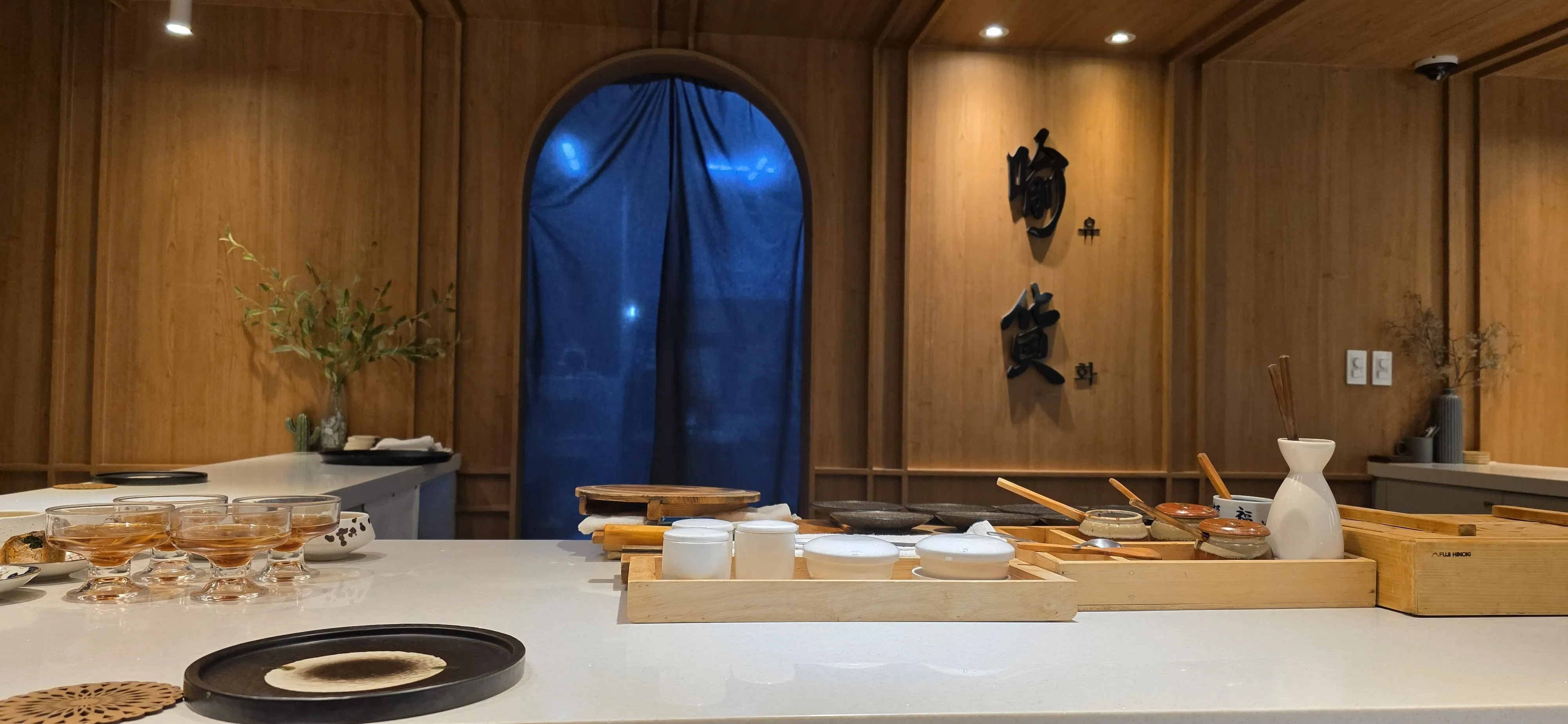 Entering inside, the calm lighting and wood-tone interior put our minds at ease. The seating is a 'U' shaped counter (Dacchi), which allows everyone to see the chef's performance vividly. It was a cozy private space for about 8 people.