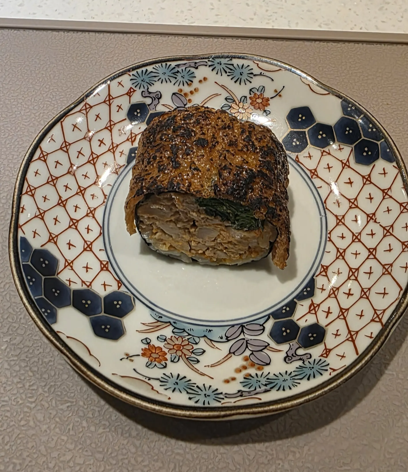 A huge roll that was hard to put in one bite. I ate it fully, thinking of good luck coming in, doubling the satisfaction.