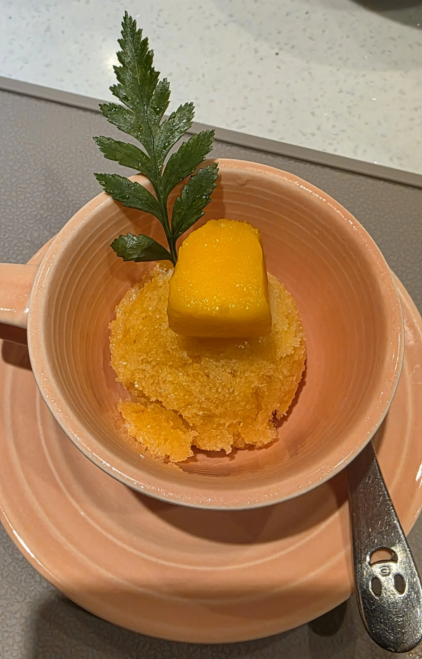 상큼한 감귤 샤베트로 입안을 개운하게 정리하며, 행복했던 식사를 마무리했습니다.