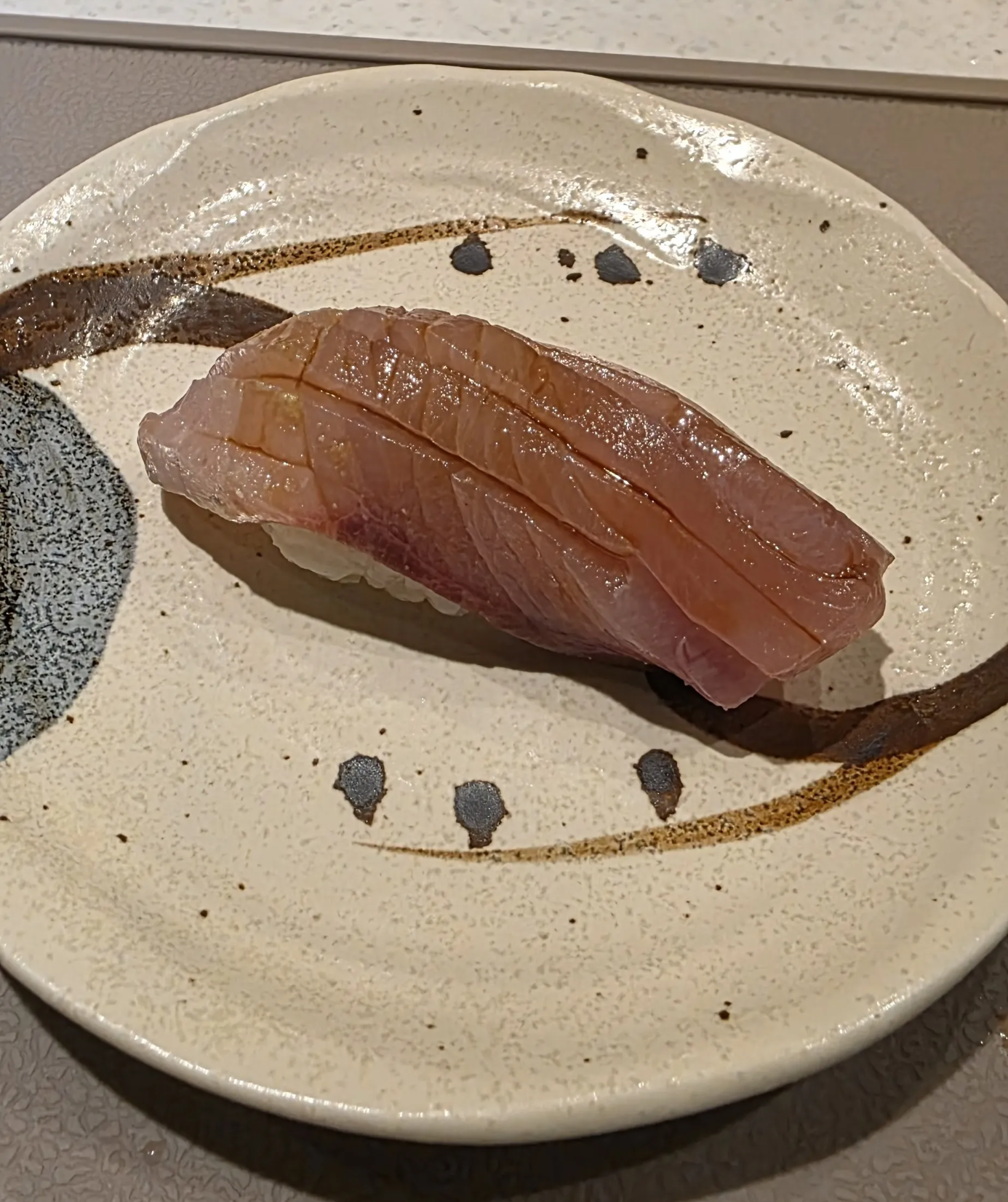 첫 점은 스시의 정석, 참돔. 적당한 숙성을 거쳐 밥알(샤리)과 생선(네타)이 입안에서 하나로 어우러지는 밸런스가 완벽했습니다.