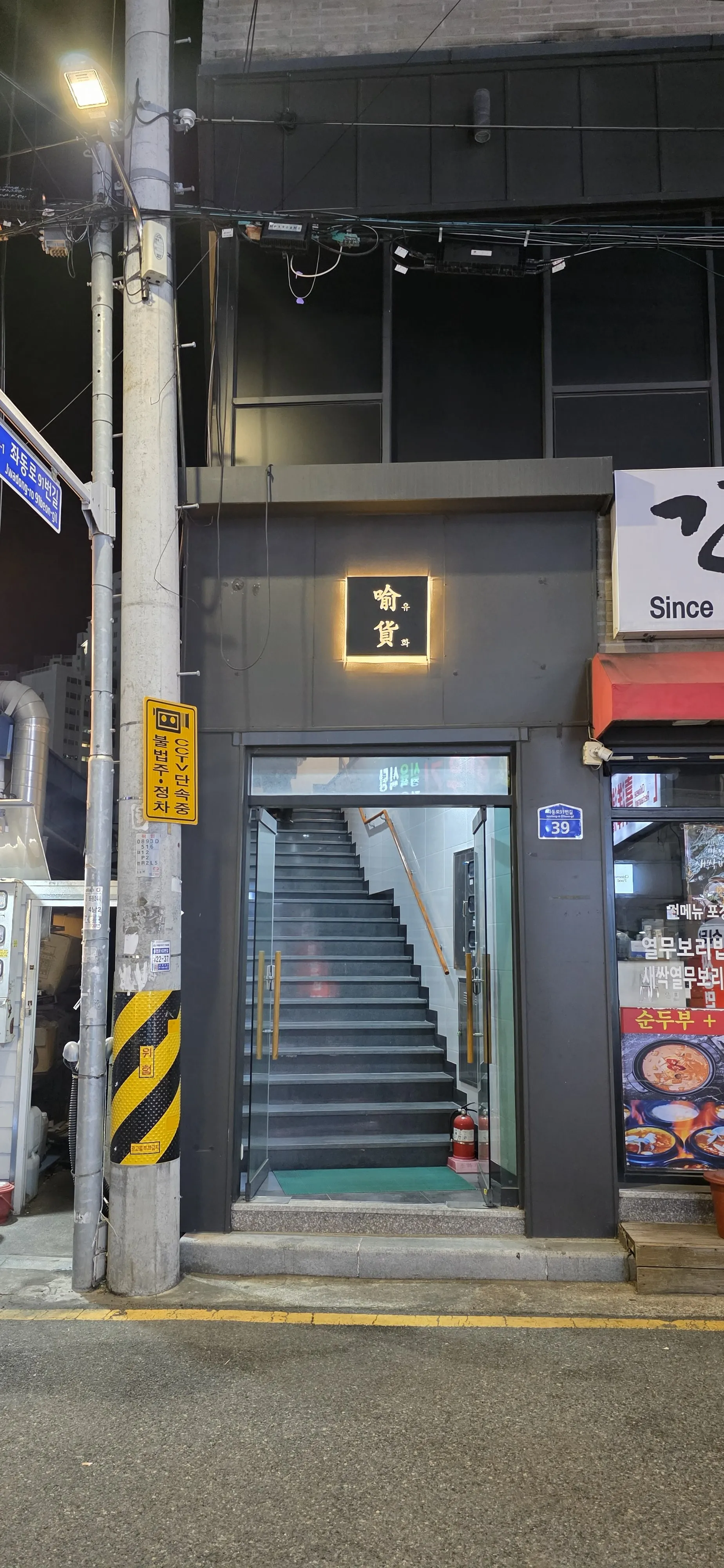 해운대 바닷가 산책을 뒤로하고 호텔에 주차한 후, 지하철로 이동하여 예약 시간인 오후 6시에 맞춰 도착했습니다. 입구는 군더더기 없이 깔끔하고 모던한 느낌입니다.