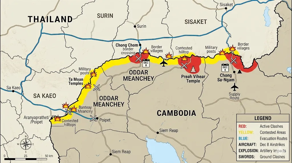 2025년 12월, 동남아시아의 평화가 흔들리고 있습니다. 태국과 캄보디아 간의 오래된 국경 분쟁이 육상과 해상을 아우르는 전면전 양상으로 치닫고 있기 때문입니다. 식민지 시대부터 이어진 100년 묵은 역사적 원한, 코쿠드 섬 인근의 에너지 자원을 둘러싼 경제적 쟁탈전, 그리고 미·중 패권 경쟁이라는 거시적 지정학적 압력이 복합적으로 작용하여 폭발한 이번 사태는 단순한 양자 간의 국지적 충돌을 넘어 아세안(ASEAN) 전체의 안보 질서를 근본적으로 위협하고 있습니다.
