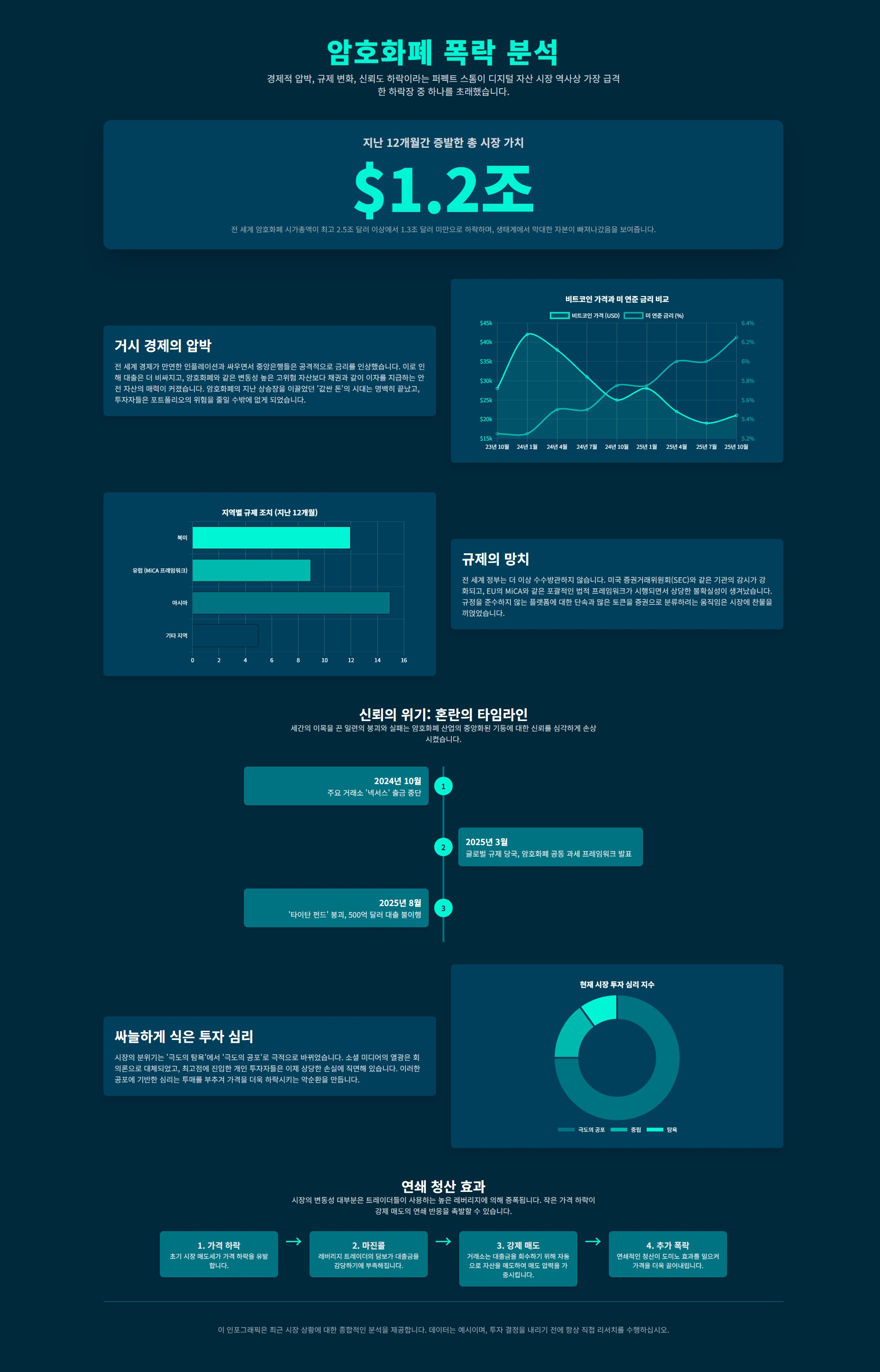 요약: 2025년 10월 암호화폐 시장이 순식간에 붕괴했습니다. 도널드 트럼프 대통령의 갑작스러운 100% 관세 발표가 도화선이 되어, 190억 달러가 넘는 역사적인 연쇄 청산 사태가 발생했습니다. 이 글은 지정학적 충격이 어떻게 시장의 구조적 취약점, 즉 과도한 레버리지와 만나 대재앙을 일으켰는지 심층 분석합니다. 또한, 붕괴 직전 포착된 거대한 숏 포지션을 통해 내부자 거래 의혹의 전말을 파헤치고, 이번 사태가 암호화폐 시장의 미래에 남긴 교훈을 재구성합니다.