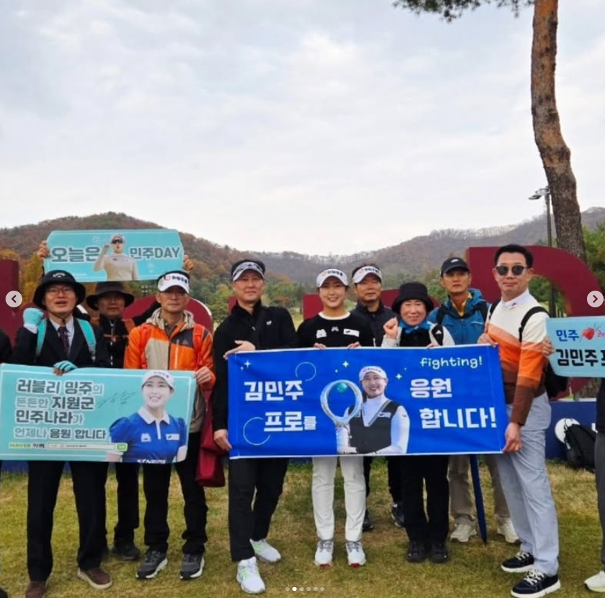 사진 : 팬카페 민주나라 팬들과 김민주 프로 사진(출처:인스타그램 캡처)