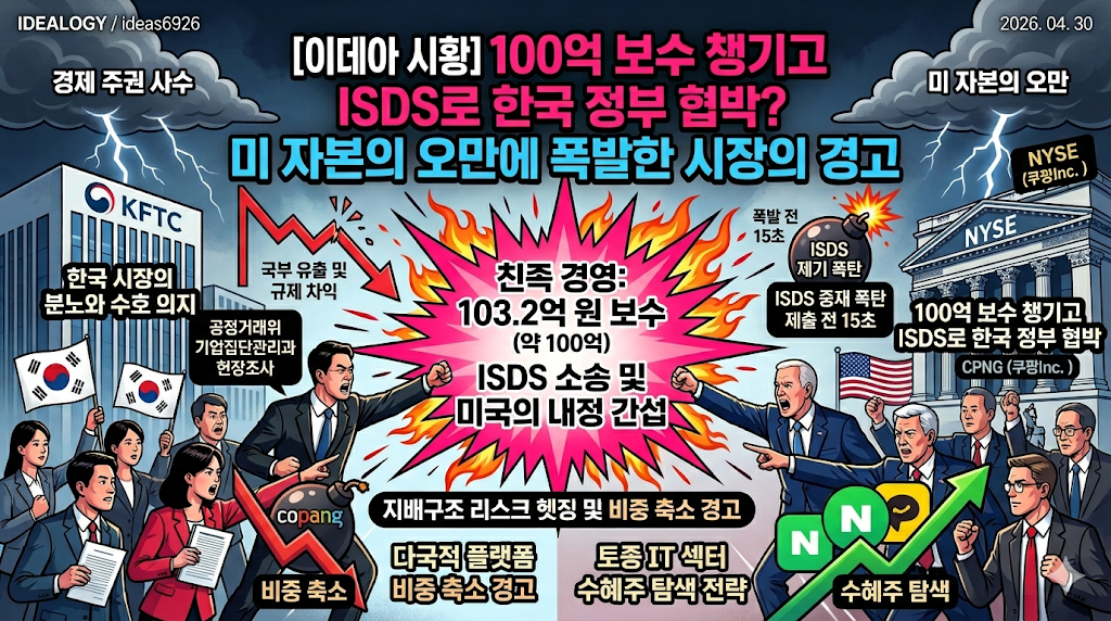 이 사안은 순수한 국내 독점규제법 적용 이슈를 탈피해, 자국법의 역외 적용 논란과 한미 통상·안보 마찰로 비화되는 지정학적 뇌관으로 진화했습니다. 규제 차익을 노리는 플랫폼의 실질적 통제인가, 아니면 한미 경제 안보를 훼손하는 사법 주권의 남용인가? 시장은 이 거대한 충돌을 예의주시하고 있습니다.